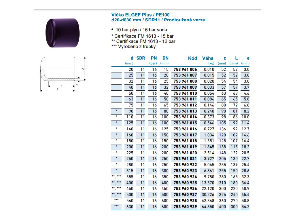 Koncové víčko LS, PE100 SDR11 je určeno k zaslepení PE trubek ve spojení s Elektrotvarovkami nebo s tvarovkami pro svařování natupo v rozvodech tepelných čerpadel, pitné vody (16 bar) a plynu (10 bar).