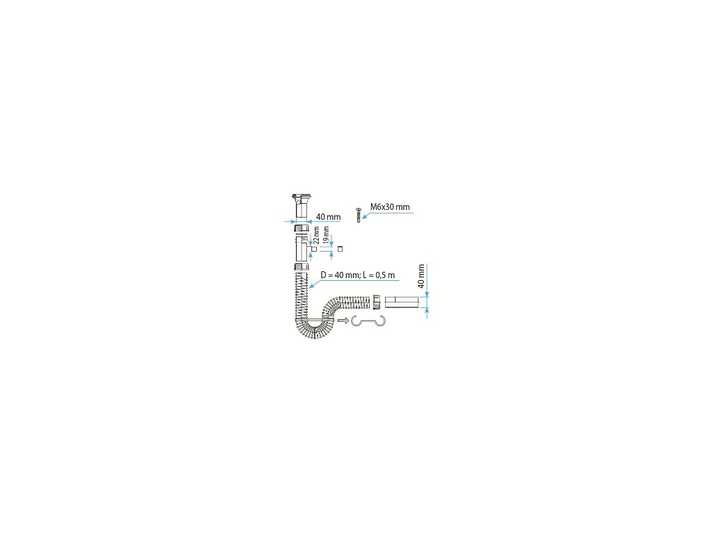 1 ks flexi sifon s nerezovou výpustí, s vývodem pro pračku/myčku a s vývodem na odpad DN40