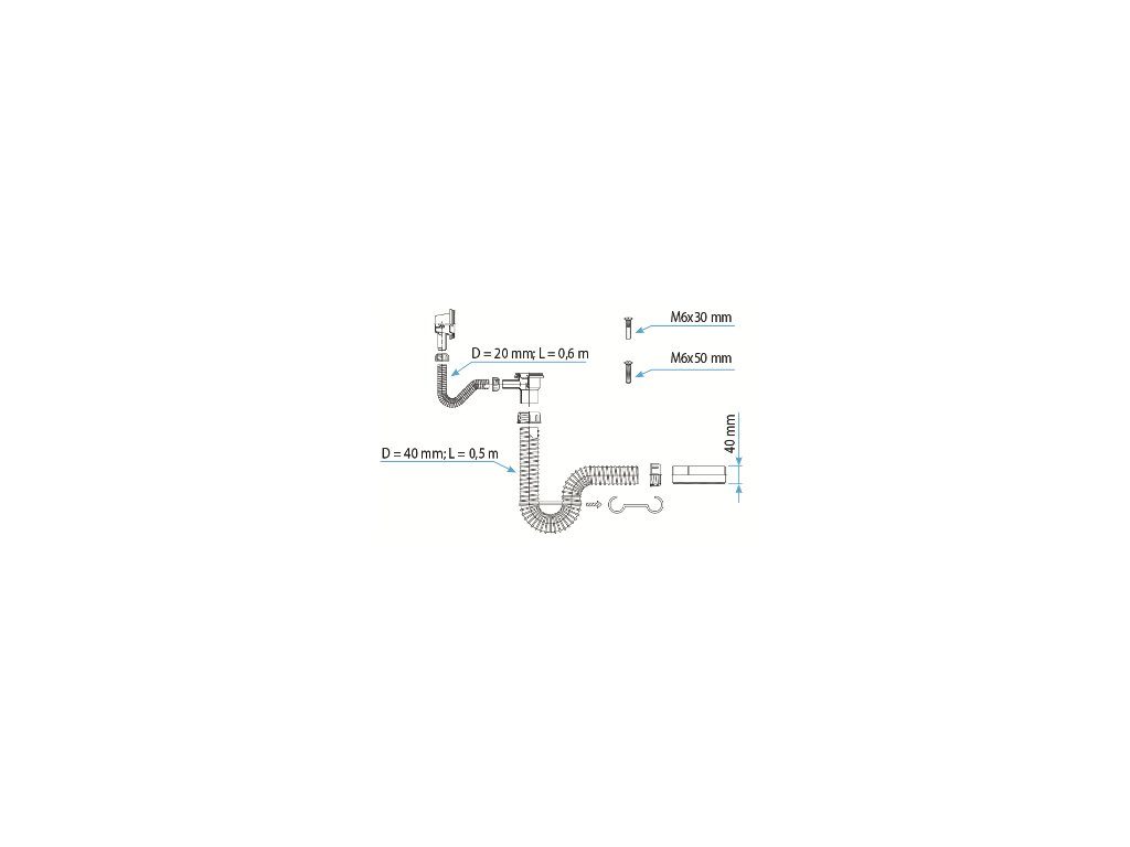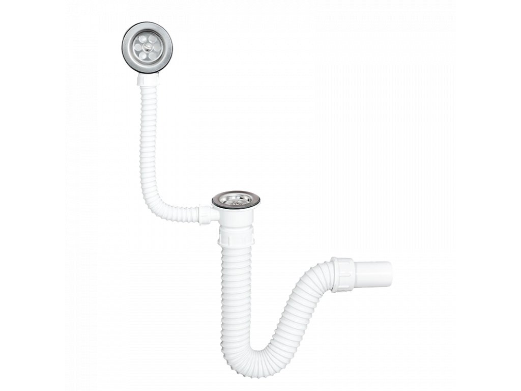 1 ks flexi sifon s nerezovou výpustí, s vývodem pro přepad a s vývodem na odpad DN40