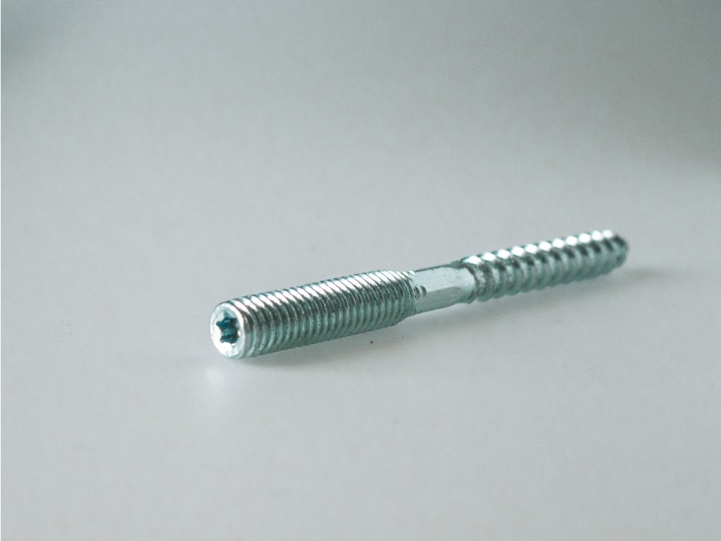 Galvanicky pozinkovaný kombinovaný šroub se závitem (dle varianty M6, M8 nebo M10), ukončený na bit TORX, uprostřed plocha pro šestihranný klíč a spodní část ukončená vrutem.