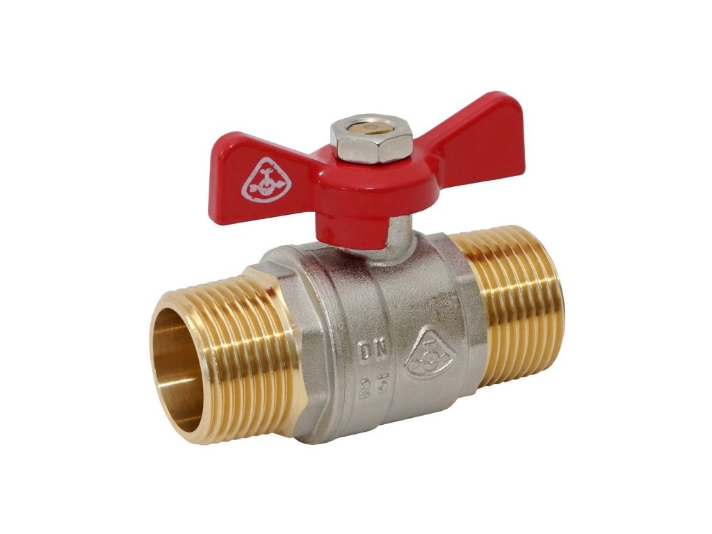 Kulový kohout KE-250 MM, PN 40, motýl s venkovními R závity dle ISO 7-1.