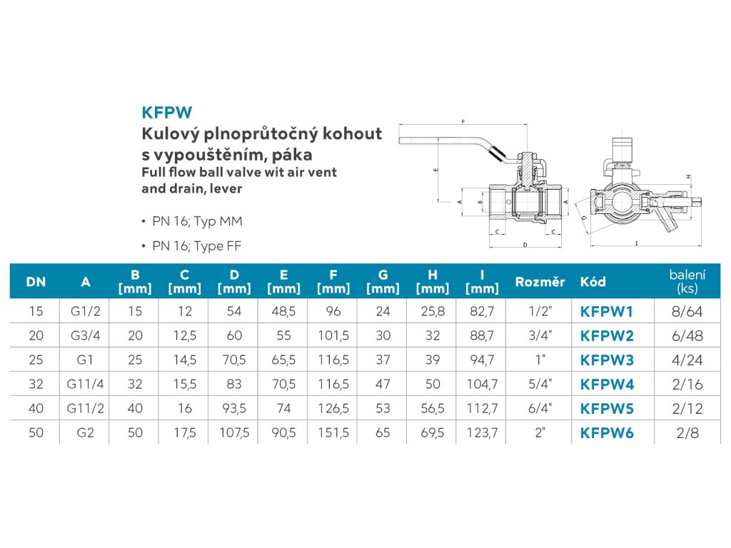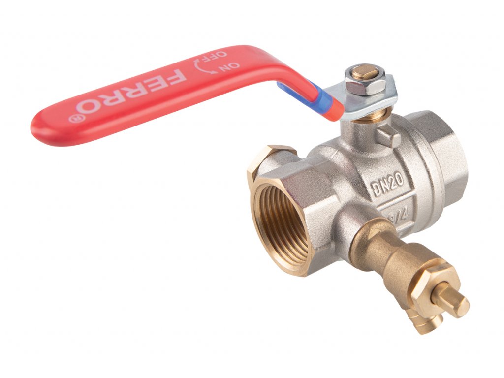 Kulový plnoprůtočný kohout FF s vypouštěním, PN 16, páka, s vnitřními závity G (dle ISO 228-1) od společnosti NOVASERVIS z nové generace kulových kohoutů F-Power.