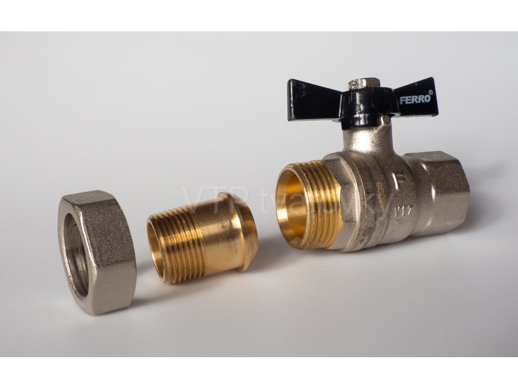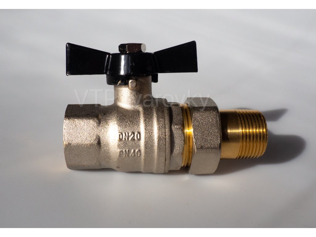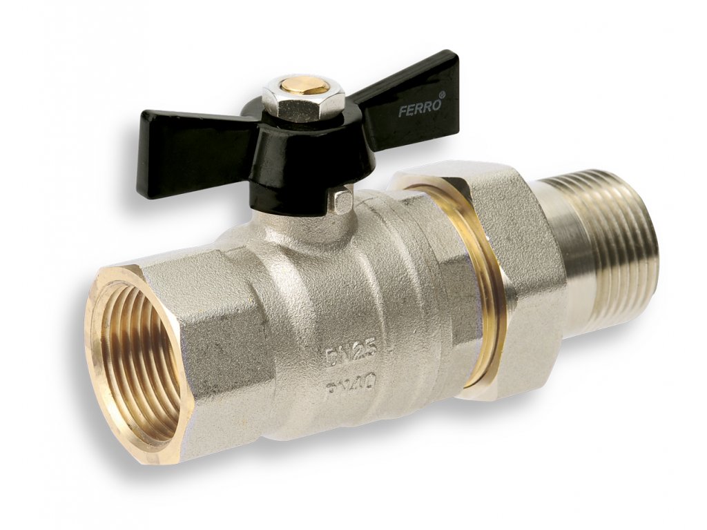 Luxusní kulový plnoprůtočný kohout MF se šroubením, PN 40, motýl