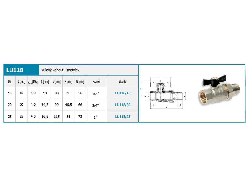 Použití: Pitná voda, voda, topení, stlačený vzduch, glykol 50 %