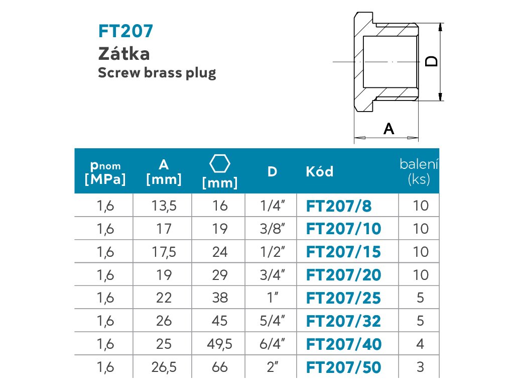 Řada PROFI = robustnější provedení oproti obyčejné Mosazné zátce šestihran.