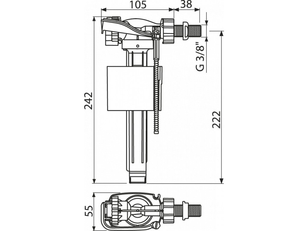 Napouštěcí ventil boční A150 s připojením 3/8", 1/2" nebo v kombinaci obou 1/2"x3/8" od českého výrobce Alcadrain (dříve Alcaplast) slouží k automatickému dopouštění vody v keramických nádržkách u WC.
