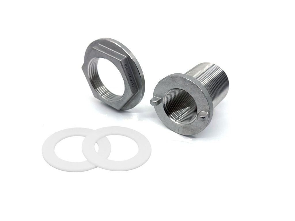 Nerezová průchodka k nádrži s vnitřním závitem se používá všude tam, kde potřebujete provrtat prostup do nádrže, bečky, barelu, sudu, kanystru, jímky apod. Do vzniklého otvoru se vsune Nerezová průchodka k nádrži a dále se pokračuje např. Kulovým kohoutem, mosaznou nebo nerezovou tvarovkou apod.
