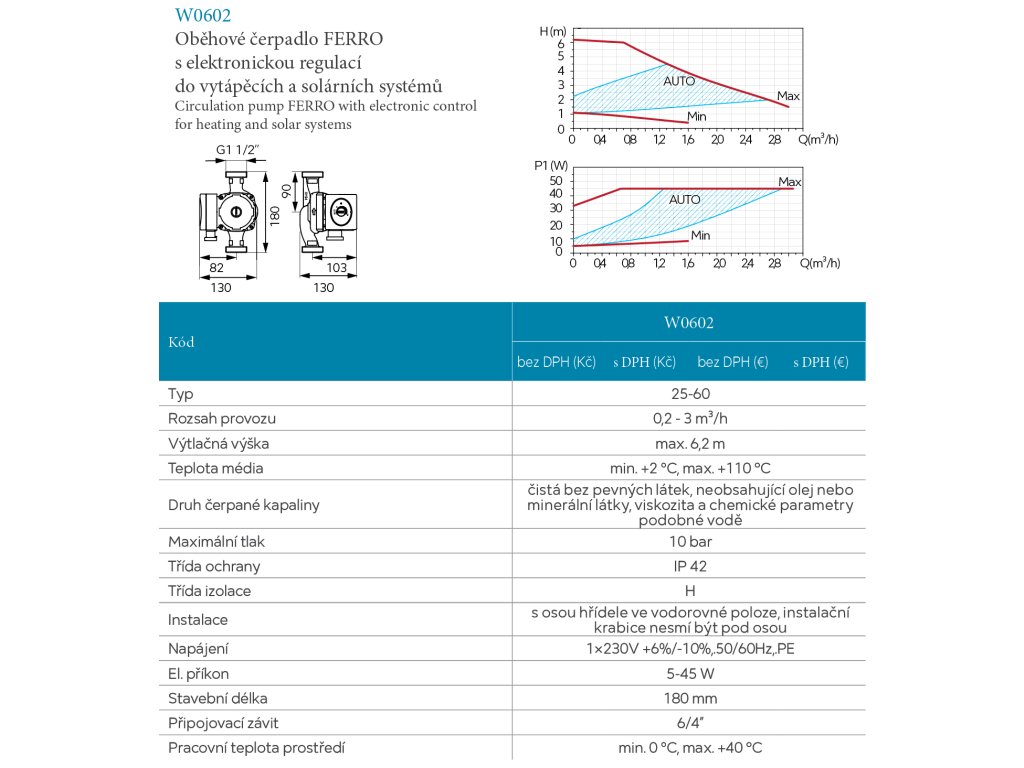Oběhové elektronické čerpadlo Ferro 25-60/180mm