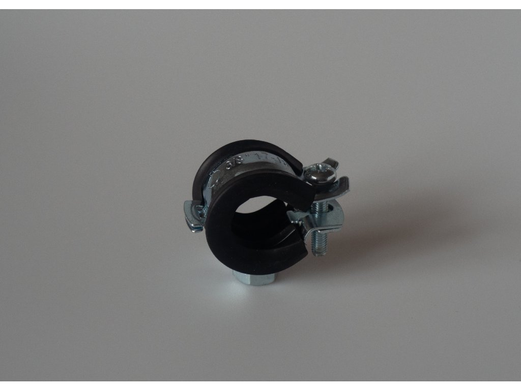 Galvanicky pozinkovaná objímka s gumou ve verzi s jedním šroubem.