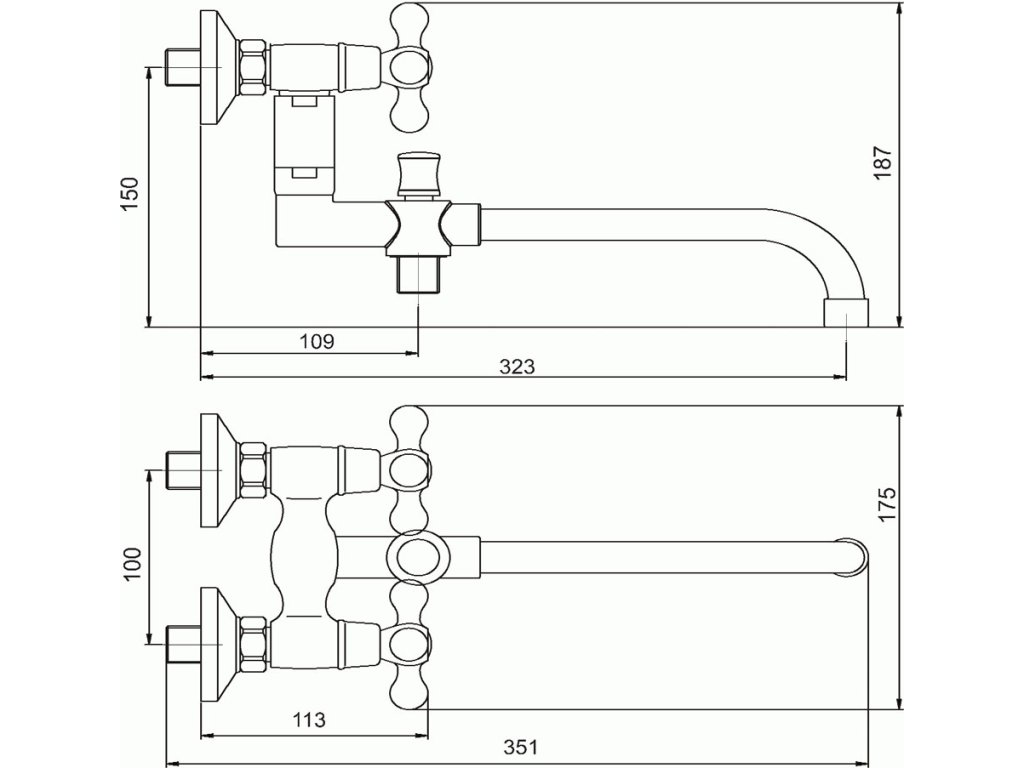 Paneláková nástěnná vanová baterie s roztečí 100 mm s otočným výtokovým ramenem s kovovým přepínačem na sprchu s připojením 1/2" na sprchovou hadici série TITANIA RETRO II chrom (99137/1,0) obsahuje kvalitní a odolné keramické kartuše s prodlouženou zárukou 5 let.