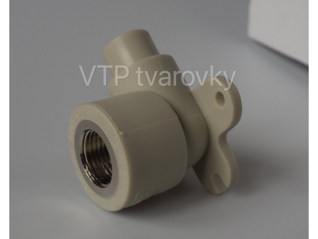PPR nástěnka s trnem (=navaření do tvarovky) s vnitřním závitem je určena pro upevnění na zeď (pomocí 3 otvorů).