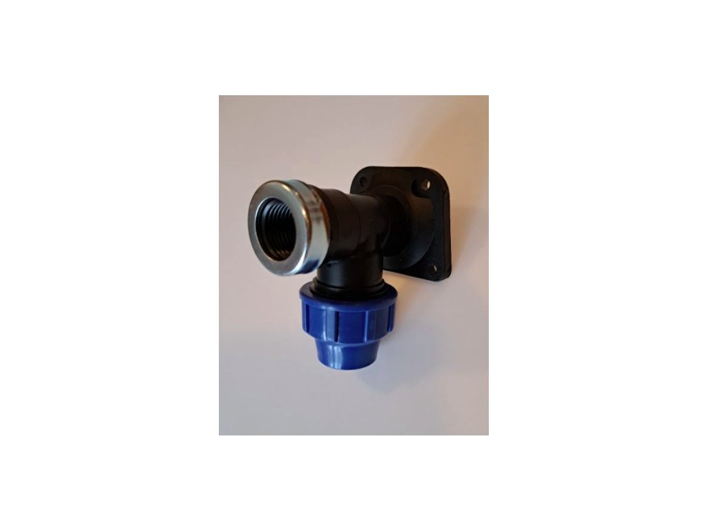 PPS nástěnné koleno s vnitřním plastovým závitem 1/2" je určeno k ukotvení na stěnu a následného spojení PE trubky průměru 20 mm např. se zahradním kohoutem.