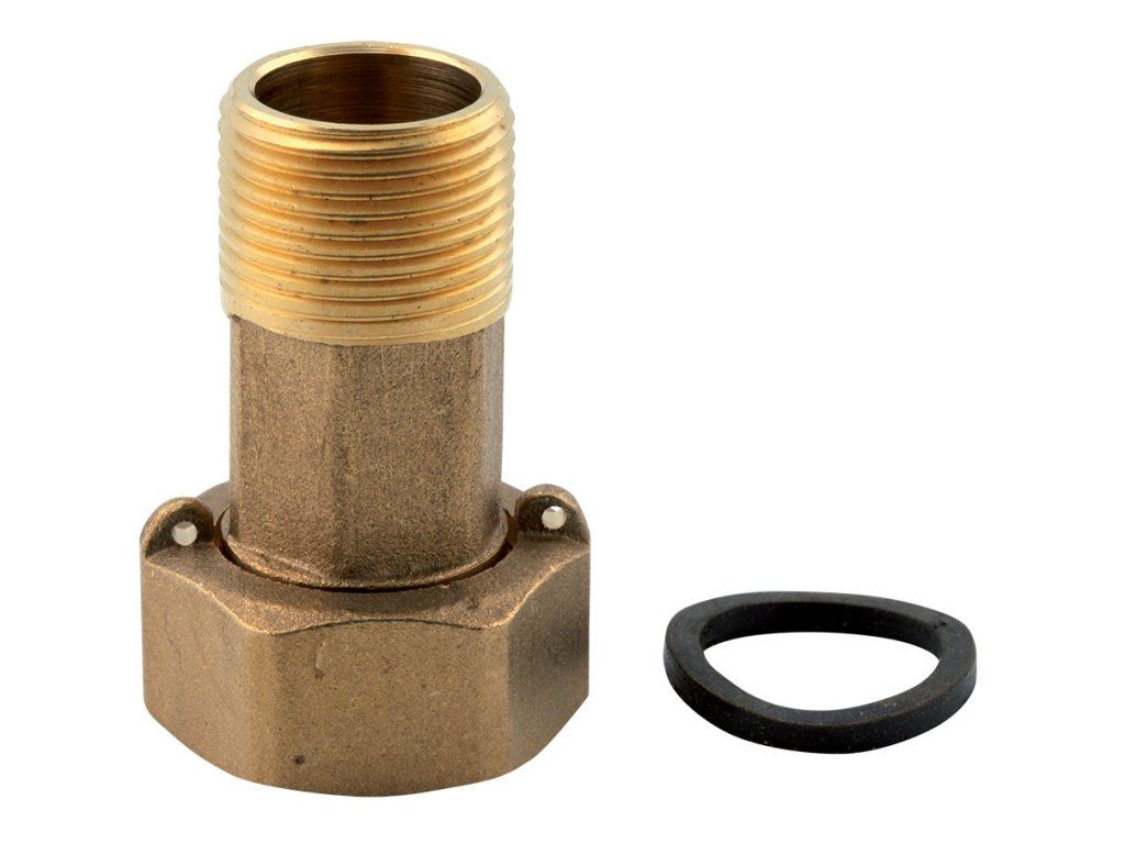 Mosazné PROFI půlšroubení k vodoměru s těsněním a mosaznou matici s otvory na plombu.