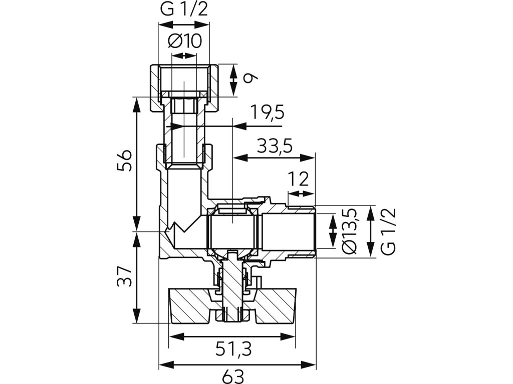 Materiál tělesa a koule: mosaz CW617N-4MS