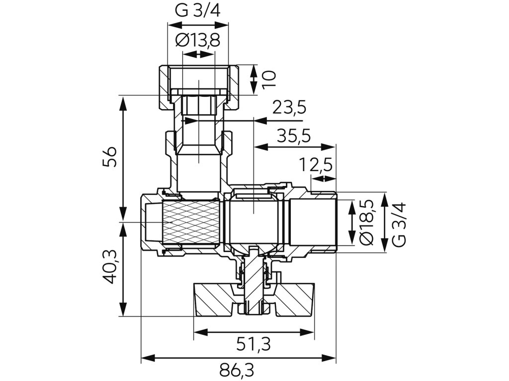 Materiál tělesa a koule: mosaz CW617N-4MS