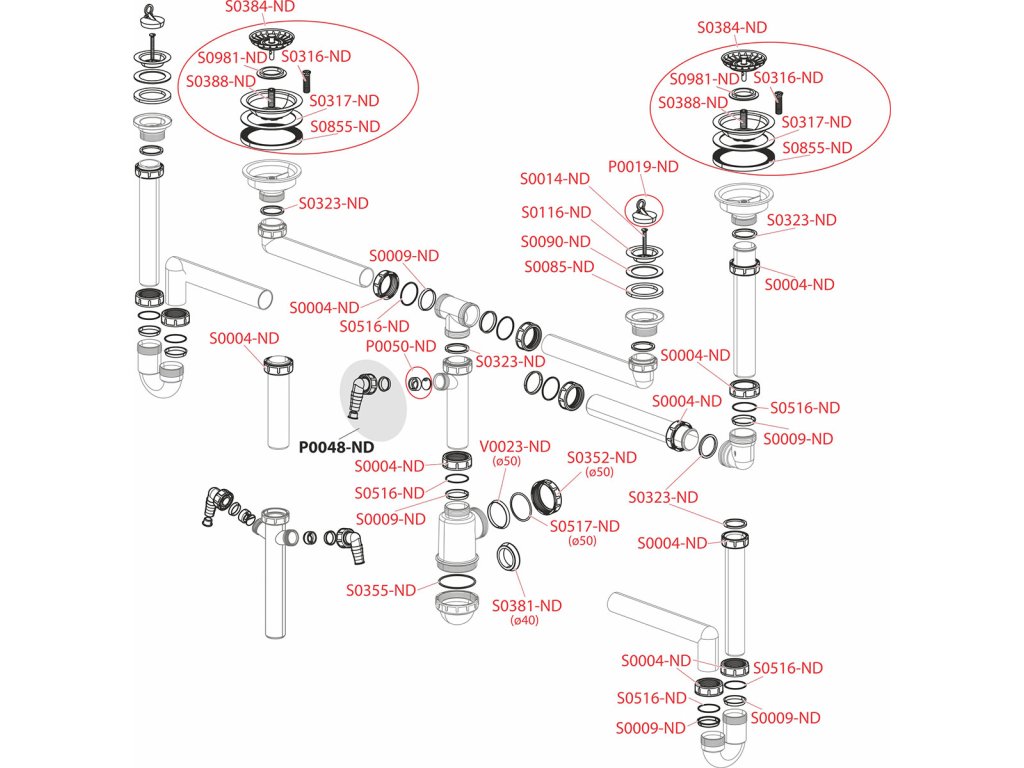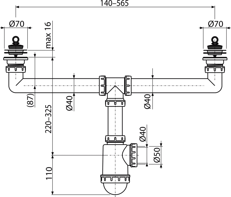 Sifon dřezový dvojitý A449 s připojením na odpad DN50 nebo DN40.