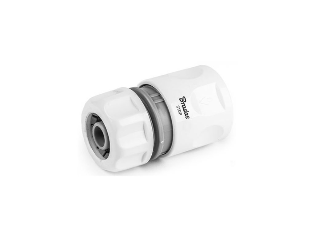 STOP rychlospojka řady WHITE LINE od výrobce BRADAS se nasazuje na konec zahradní hadice 1/2" nebo 3/4", kterou potřebujete mít trvale pod tlakem. Nemusíte nikde odbíhat a neustále zastavovat kohout. Jednoduše nasadíte tuto rychlospojku na hadici, pustíte vodu, zpětná klapka uvnitř rychlospojky se uzavře. Jakmile nasadíte na stop rychlospojku protikus, např. Kovovou zahradní pistoli nebo Mosazný postřikovač zpětná klapka uvnitř spojky se otevře a umožní tak průtok vody. Při následném odpojení se klapka zase uzavře.